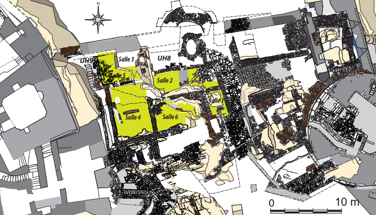 Des fouilles de la zone intermédiaire entre les enceintes basse et haute (le bas du donjon) se sont