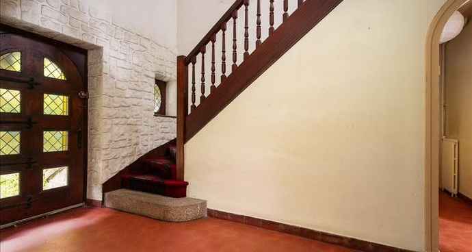 Sa porte d'entrée au centre du pignon est cachée par le bas du talus du jardin du passage à niveau.
