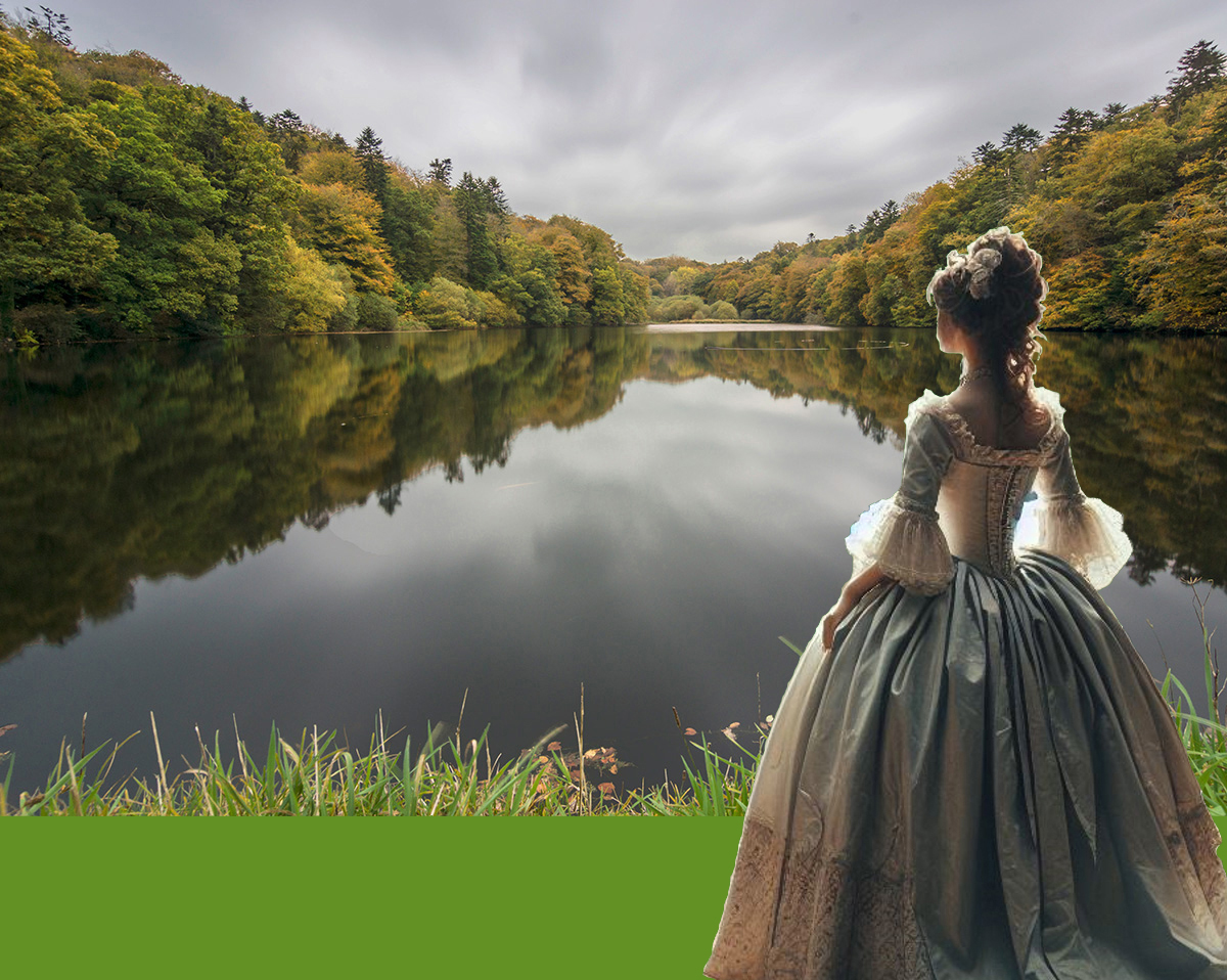 Blason deEn 1630, la belle Marie du Coskaer rêve en admirant son bel étang de Brezal