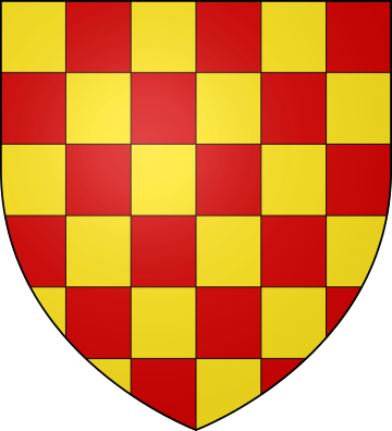 Barach en Louannec, évêché de Treguier : Maison d'ancienne chevalerie porte écartelé d'or & d'azur, comme Tournemine : l'aisné de cette maison est conseiller en la cour de parlement de ce pays, il est héritier des grands biens & vertus de cette maison-là (Armorial breton de Guy Le Borgne - 1667). Olivier de Kerhoent, seigneur de Kergournadec’h en Cleder, Trohéon, Coatquelfen († après 1594), épousa Marie de Ploeuc, dame de Coëtanfao († 1573). Olivier abandonne les armes des Kerhoent pour celles des Kergournadec’h. Échiqueté d'or et de gueules. Devise : "Dieu est". |