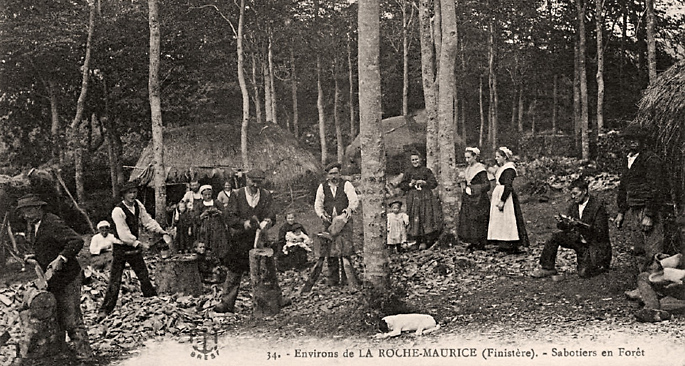 Il y a une soixantaine d'années, La Roche-Maurice avait encore un sabotier. C'était Yves Person appelé Cheun ar Boutaouer (Yves le sabotier), c'était mon grand-père. Après avoir travaillé quelques années dans le bois d'Huelgoat, il s'installa, la guerre 1914-1918 terminée, à La Roche.