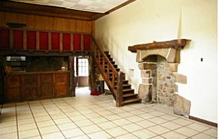 La grande salle du rez-de chaussée, vue dans un sens et dans l'autre. Au milieu, une cheminée factice qui était autrefois l'entrée du four.
