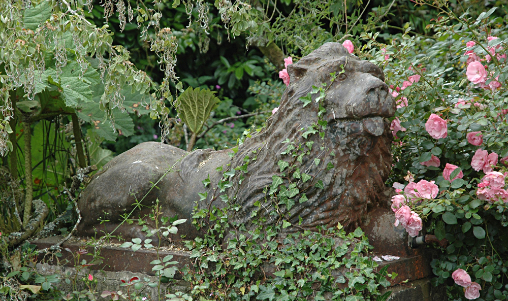 Ce lion en fonte est une production de la fonderie de Brezal. Il se trouve actuellement devant la façade château du Pontois, dans un massif de fleurs qui pourraient finir par le dissimuler à la vue des visiteurs.