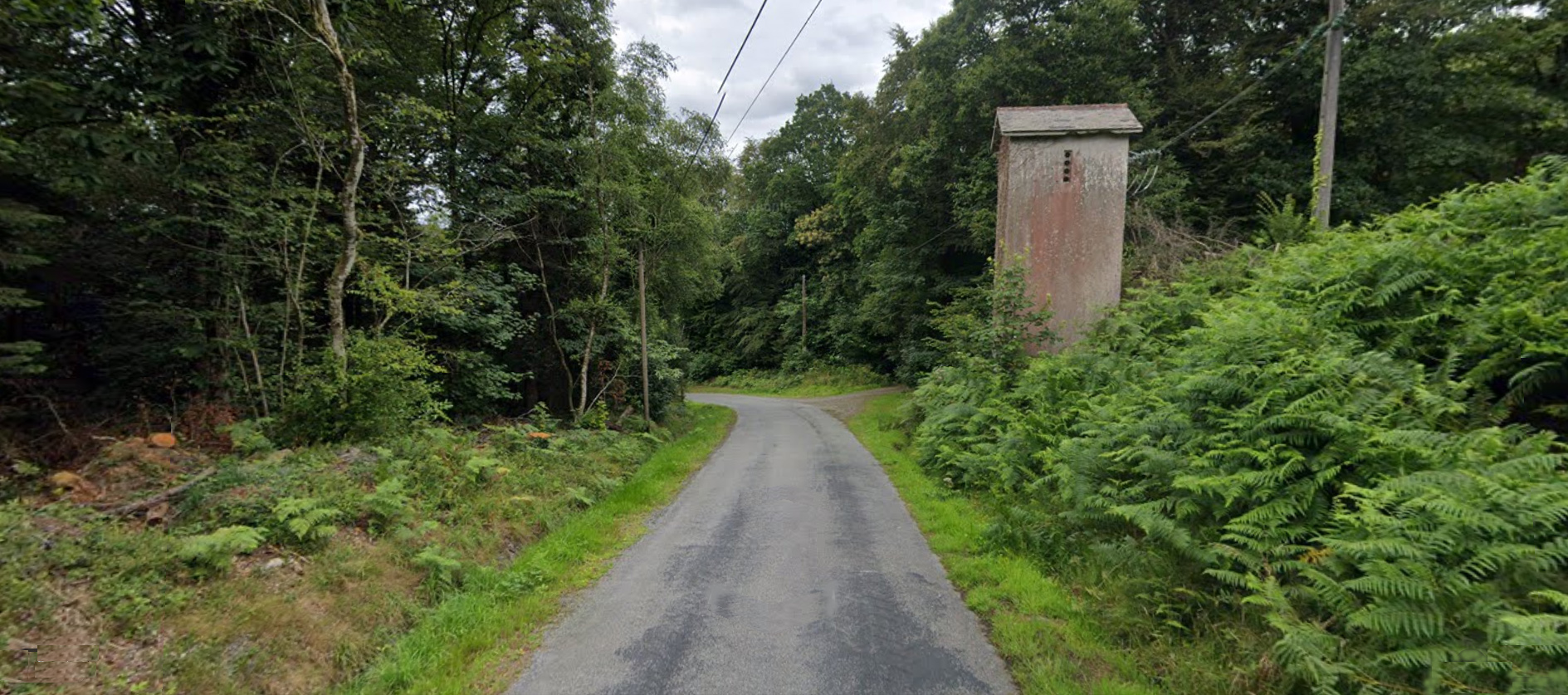 Descente vers Pont-Christ : à droite, après le transformateur, le chemin vers l'ancienne ferme de Gorrequer