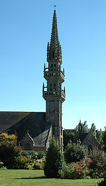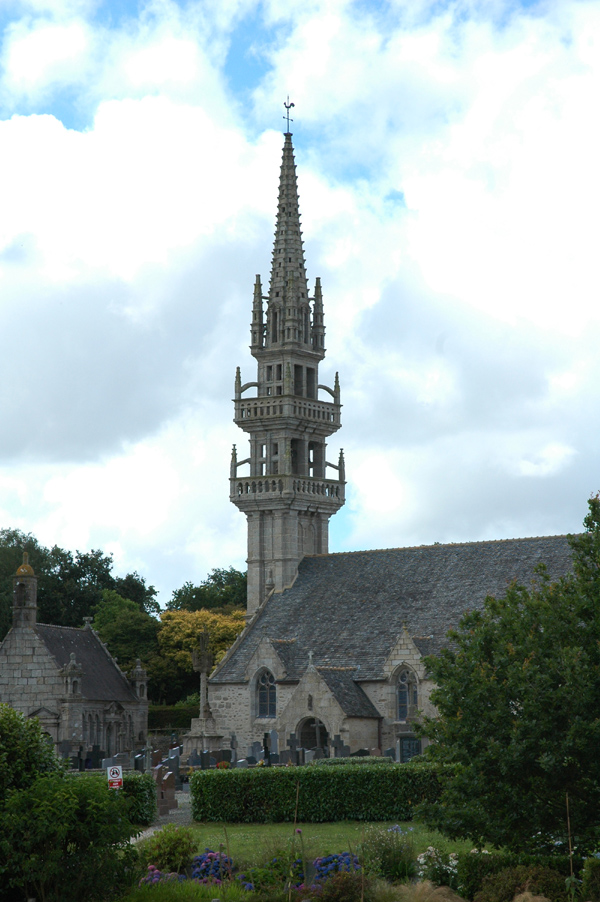 L'église est agrandie en 1698 sur les plans de Pierre Prigent, de Sizun et a été remaniée en 1707. Le clocher qui date en partie de 1610 s'élève à près de 36 mètres. Le portail Ouest porte la date de 1678. Le chevet date de 1688. Le clocher, à 2 étages de cloches et 2 galeries, porte la date de 1678, une cloche porte l'inscription "1785 J. F. Guillaume ma fait". L'abside porte la date de 1688. La porte de la sacristie, édifiée par Christophe et Joseph Kerandel, date de 1697-1699.