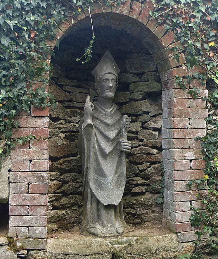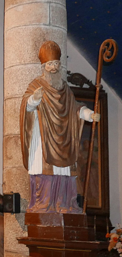 Mais comme nous sommes en Léon, cette statue pourrait aussi représenter Saint Pol Aurélien et le dragon de l'île de Batz. "Saint Pol marcha vers la bête d'un pas ferme et lui ayant passé son étole autour du cou, il y fit un noeud, dans lequel il glissa, en guise de corde, son bâton. Il le conduisit ainsi à l'extrémité nord de l'île et lui ordonna de disparaître à jamais dans les profondeurs marines".