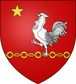 De gueules au coq hardi d'argent, perché sur une chaîne d'or, posées en fasce, adestré en chef d'une étoile de même. Devise : Fortis et dives. Famille en Bretagne, originaire du Poitou. |