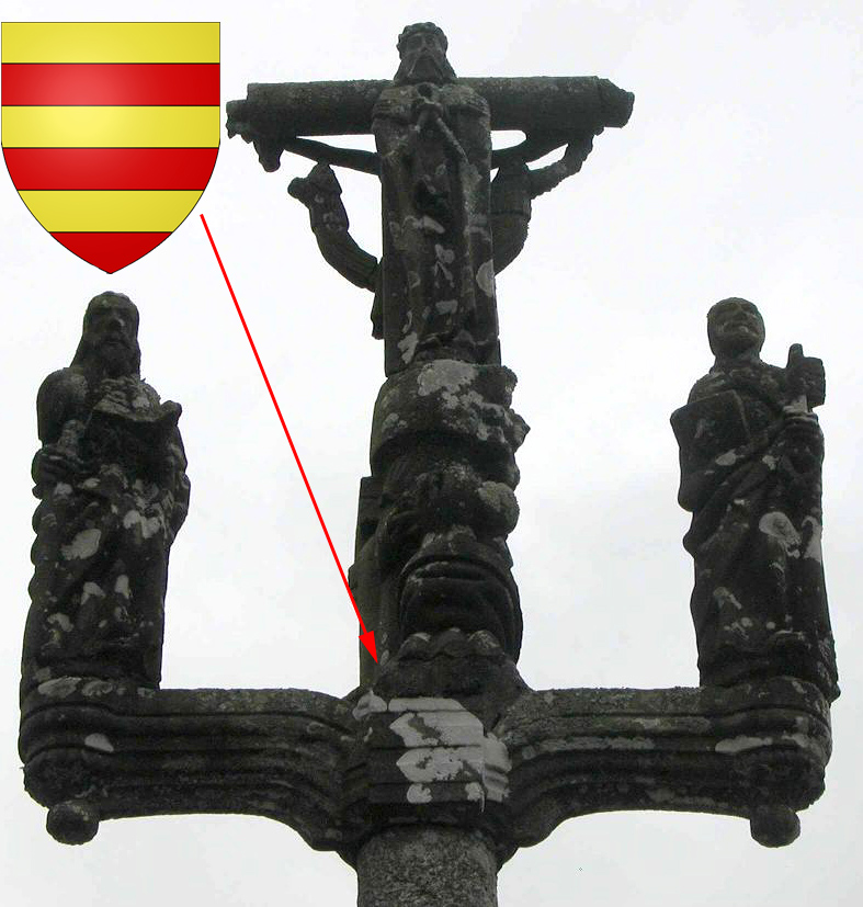 Blason de Kerazret dans les parties 1 et 4 d'un écartelé sur le calvaire du Dirou à Kersaint-Plabennec