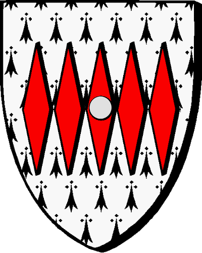 D'hermines à cinq (alias : six) fusées accolées de gueules (alias : de sable), alias : celle du milieu chargée d'un besant d'argent, alias : d'un annelet d'or. Famille originaire du pays nantais. |
