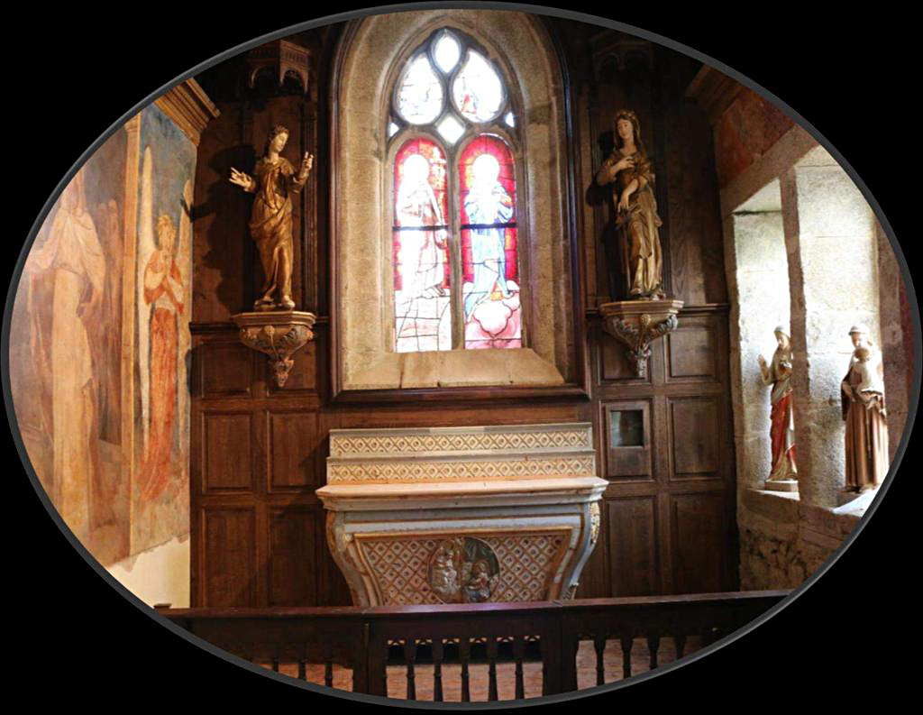 La logette murale, à droite de l'autel, contient depuis 1907, réuni à ceux de sa mère et son grand-père, le chef de Yan' Dargent,