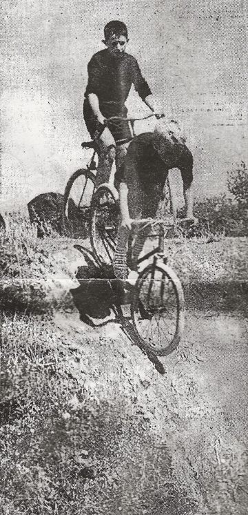 "Il a fallu travailler dur pendant un mois avant de pouvoir s'amuser. Les plus forts prenaient une bêche ou un croc, les plus jeunes une pelle ! La piste unique du début s'est multipliée et il faut être un habitué du circuit pour s'y reconnaître. Le travail a été bien fait, les virages sont relevés, les "dos d'ânes" ont été renforcés. Les places réservées aux spectateurs sont soigneusement aménagées et les visiteurs ne courrent aucun risque. Le coin des coureurs réserve une surprise. Des chambres à air éventrées, deux moitiés de roues pendent à un portique.