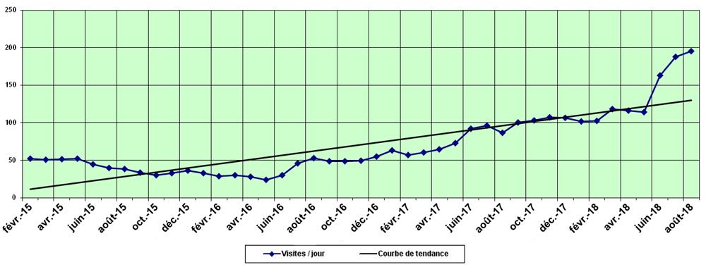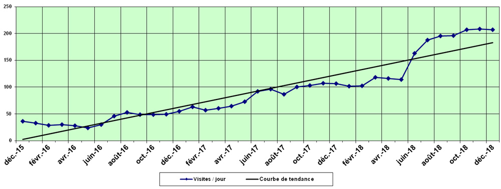 | Visites mensuelles | Visites cumulées | Consultation de pages | Cumul des pages vues | Visites par jour | Nb pages / visite | Accès direct | |