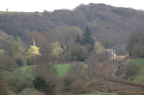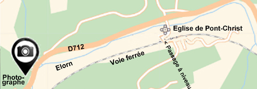 En comparant la photo et la carte, on s'aperçoit que le téléobjectif écrase les distances. Sur la photo, on voit une courbe de la voie ferrée beaucoup plus prononcée qu'elle n'est en réalité.