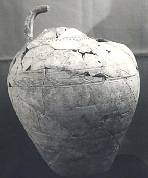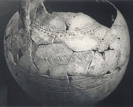 Grand vase en poterie commune oxydée, reprenant le décor indigène de la céramique carbonifère. | ![]() |