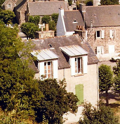 La maison Elleouet construite en 1926 au pignon du débit de boissons etAverti qu'on venait de découvrir, au pied du vieux château fort de La Roche-Maurice, datant du XIVè siècle, un très curieux souterrain, aboutissant à deux chambres remarquablement conservées, nous nous dirigions, hier après-midi, vers le joli bourg, perché sur un immense rocher de granit et situé à environ cinq kilomètres de Landerneau.